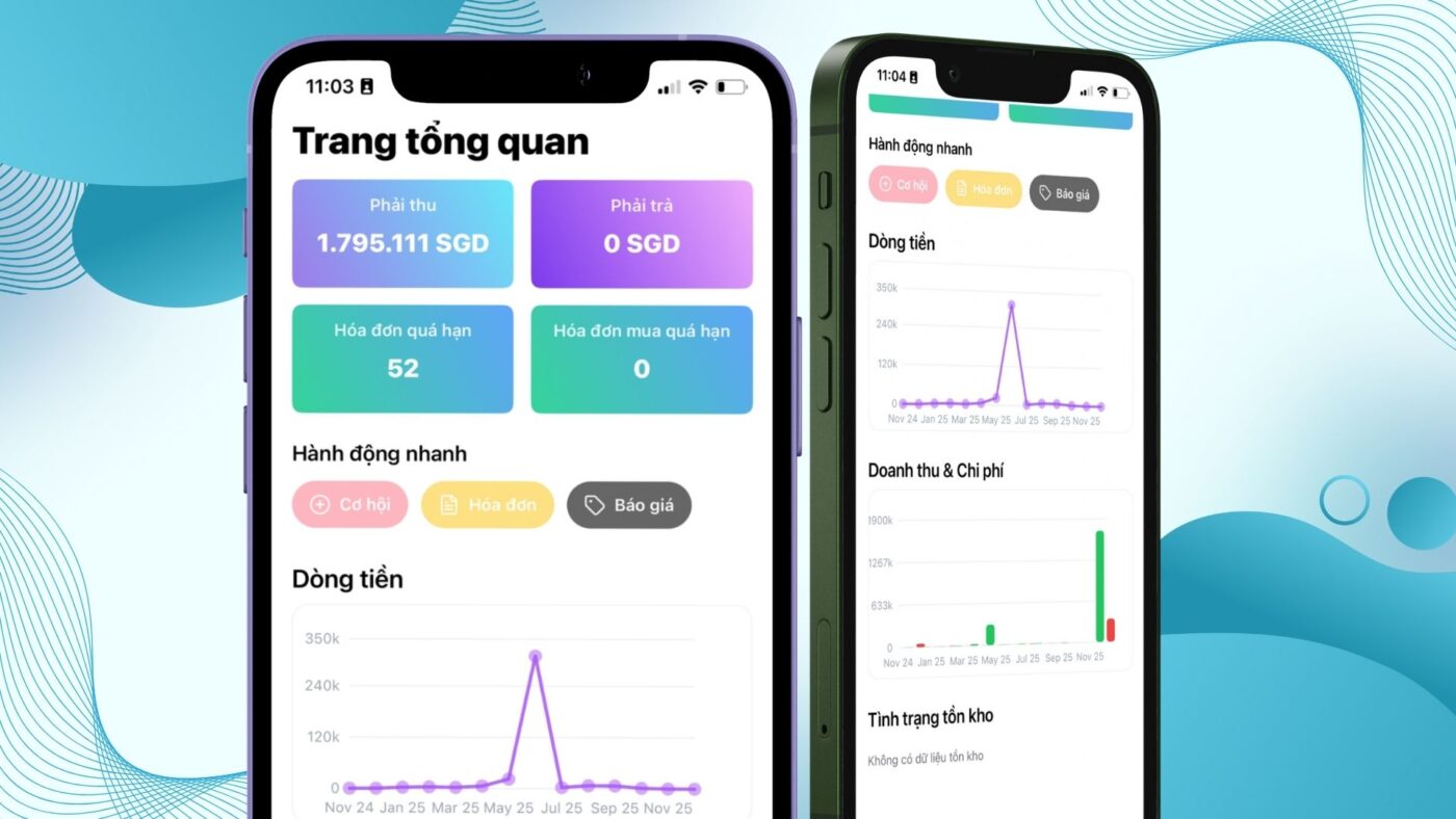 • Hành động nhanh: Tạo mới Cơ hội, Hóa đơn hoặc Báo giá ngay từ màn hình chính.