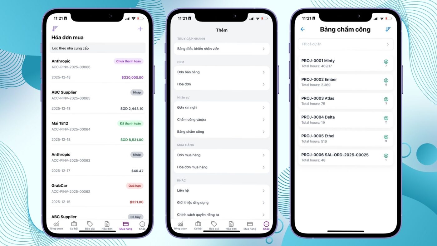 • Quản lý Nhân sự di động: Thực hiện Check-in/Check-out (Chấm công), gửi đơn xin nghỉ phép và theo dõi bảng điều khiển nhân viên cá nhân ngay trên app.
